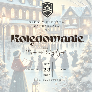 Tradycja kolędowania to jeden z najpiękniejszych zwyczajów, który co roku gromadzi całą społeczność Fregaty. Dlatego z radością zapraszamy wszystkich uczniów, rodziców, nauczycieli i przyjaciół naszej szkoły na wspólne kolędowanie!